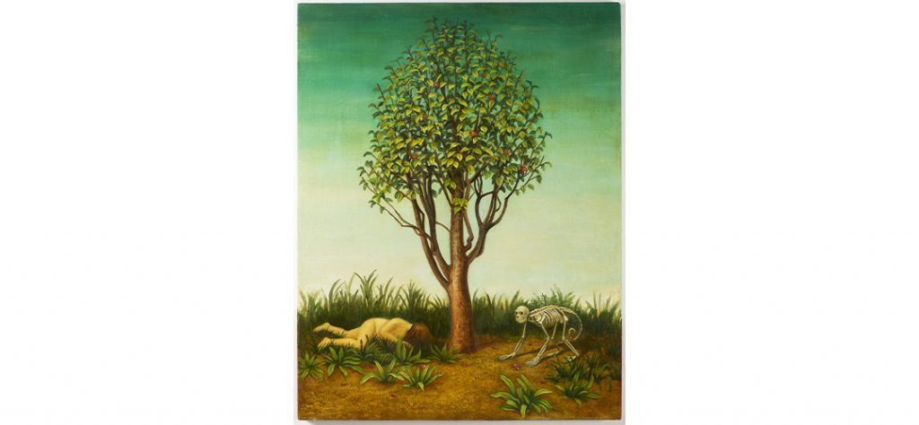 For Moemi Yamamoto (b. 1985), dreams are an inspiring aspect of life as well as a kind of safe haven. She writes some of them down, to become the starting point for her paintings, which in this respect can be considered biographical, although they reflect the hidden life of the subconscious rather than our waking existence. Nor do they avoid waking life, since they do not rely on the dream imagination in their entirety. As a result, they exude a peculiar timelessness, a state which generally speaking seems closer to the past than to the technology-laden and virtually-experienced present. Their un-reality is further enhanced by their distinctive visual mode. The Japanese sense of flatness and parallel perspective, combined with a Gothic stylization of the faces and the proportional canon, which serves almost exclusively to define the contours and directions of movement, create an unsettling atmosphere on the canvas that tantalizes and automatically reinforces one’s concentration in reading the painting.